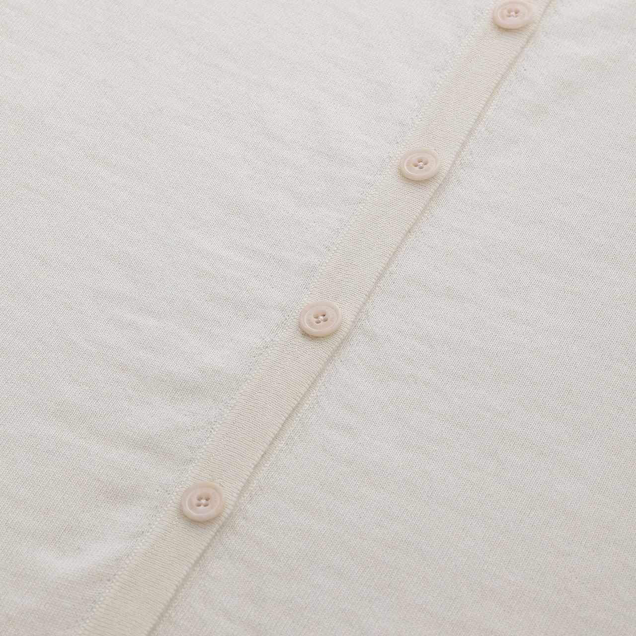 細番手のカシミヤでシンプルに仕上げたクルーネックカーディガンは風合いを極めた一着。